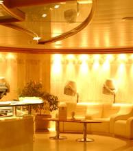 Oasis SpaThe Oasis Spa area is located just aft of the aft lifts, and fills the entire stern end of Lido Deck. For those who really want to relax, a visit to the Oasis Spa is a hedonistic way to spend a few hours. With facilities for both men and women, there is an extensive range of therapeutic and up lifting treatments available, from Balinese head massages to facials, manicures and body wraps. Or enjoy a warming and cleansing visit to the sauna, steam rooms or jacuzzis. The soft lighting, marble floors and beautiful hand-painted murals adorning the walls, create an ambiance of calm and tranquillity, the perfect setting in which to rejuvenate yourself. |