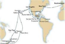 Departs Los Angeles, California, USA Sailing 2013: 12 Mar Ports of Call Los Angeles, Puerto Vallarta, San Juan Del Sur, Puntarenas, Panama Canal, Curacao, Grand Cayman (George Town), Ft Lauderdale (Pt Everglades), New York Please enquire about this cruise for pricing.