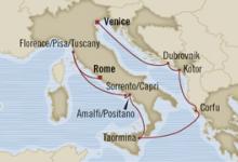 Departs Rome (Civitavecchia), Italy Sailing 2013: 3 Jul ,28 Aug Ports of Call Rome (Civitavecchia), Livorno, Sorrento, Capri, Amalfi, Positano, Taormina, Corfu More Kotor, Dubrovnik, Venice Select a sailing date for approximate pricing.